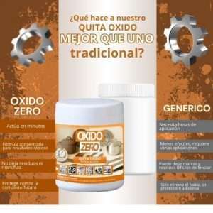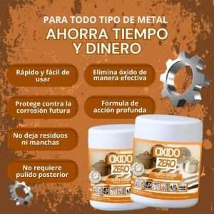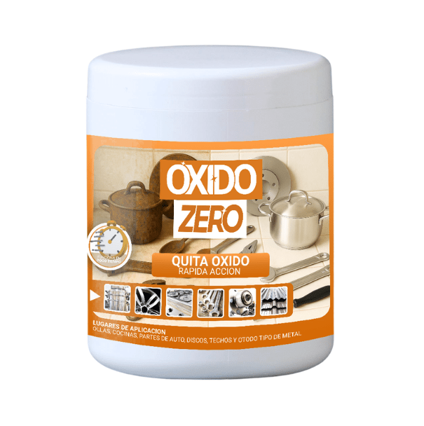 Óxido Zero es un eliminador de óxido de acción rápida que limpia y restaura superficies metálicas. Ideal para ollas, utensilios de cocina, partes de autos, herramientas y todo tipo de metal, devolviendo brillo y mejorando la apariencia sin esfuerzo.